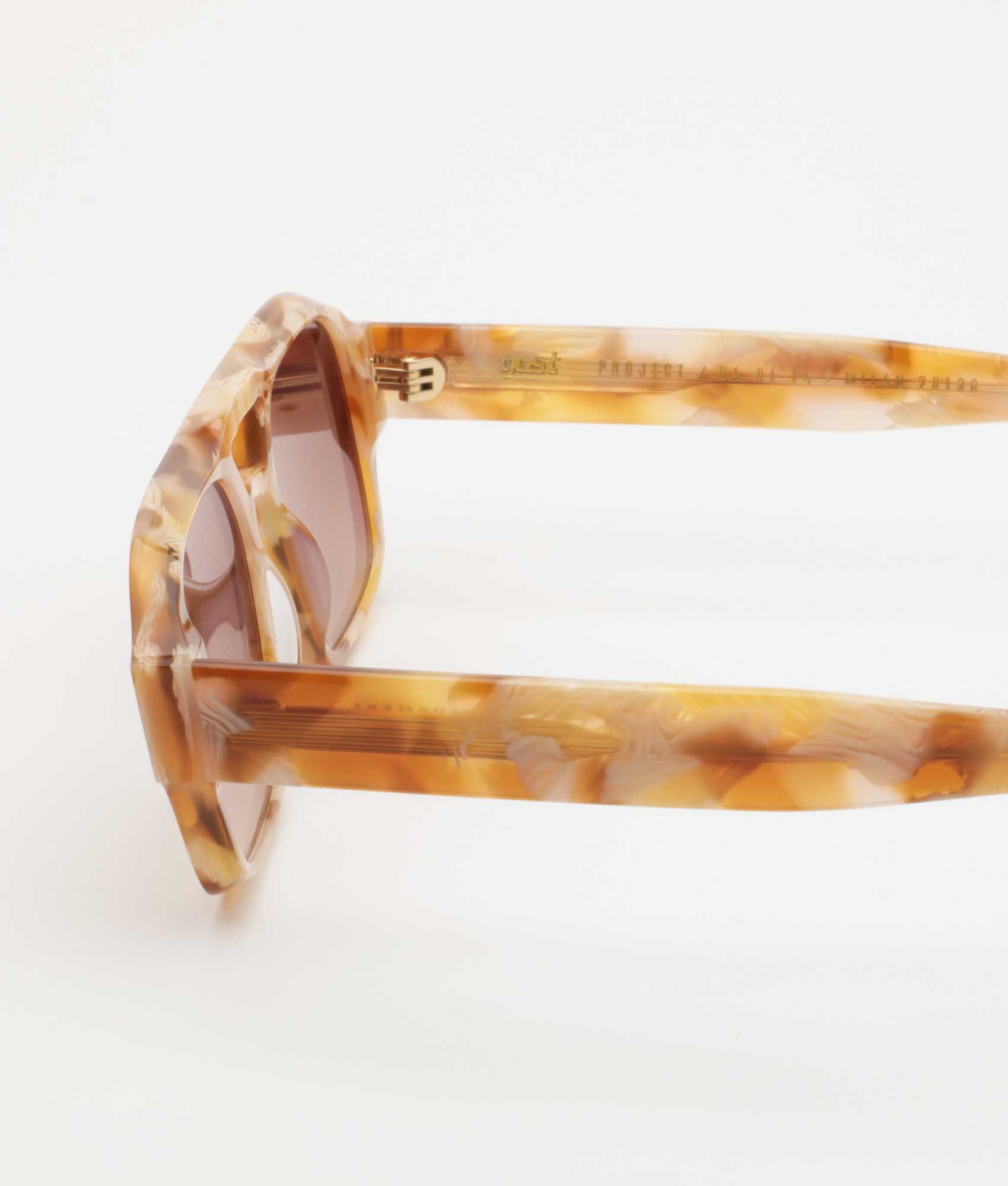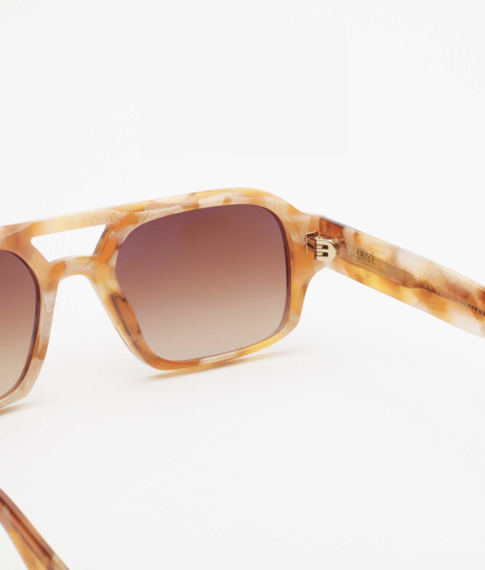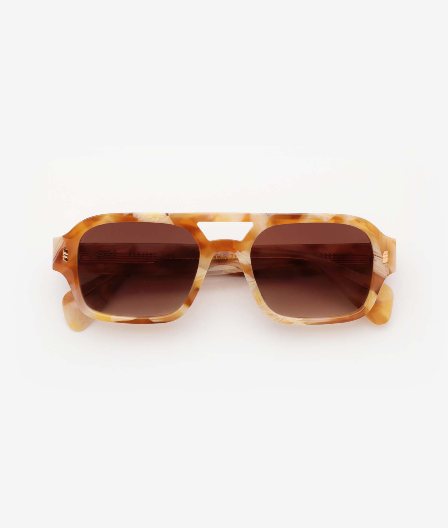 Occhiali da sole realizzati a mano con montatura in acetato e lenti semi-piatte con rivestimento interno antiriflesso – protezione 100% UVA/UVB. Cerniere in metallo a cinque canne. Custodia rigida premium e panno per la pulizia in microfibra.